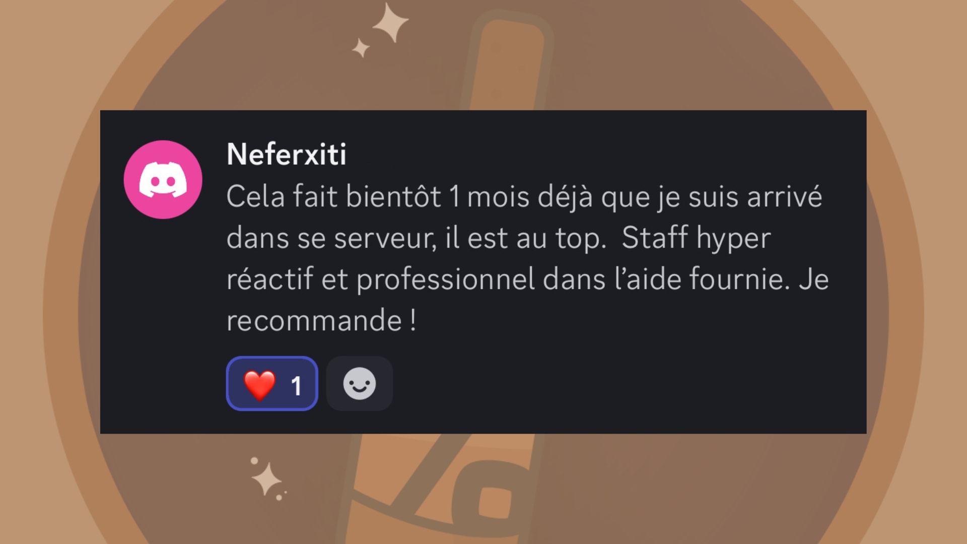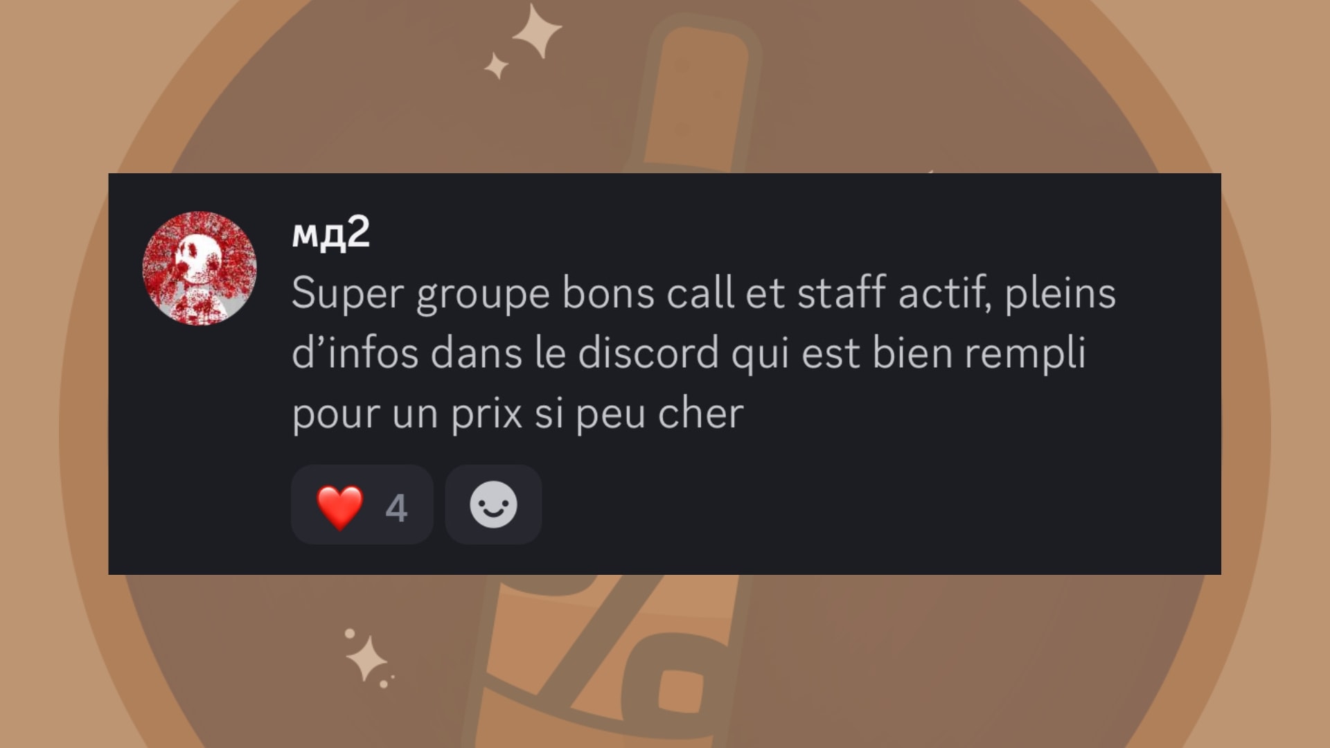 Des guides de ouf, le staff ultra réactif ! Une owner de qualité ! Je recommande fortement ! Si tu es motivé et que tu as de thune rejoins le discord !